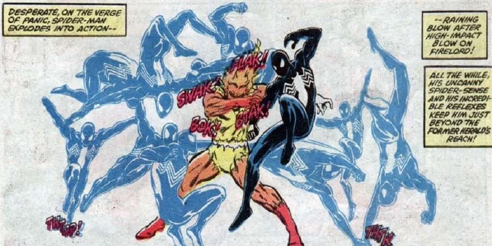 El Hombre Araña es legendario por su sentido de la araña que detecta el peligro. Eso, combinado con su increíble agilidad de araña, hace que sea muy difícil darle un golpe. Spiderman puede esquivar a She-Hulk durante mucho tiempo y también puede hacer sus propios disparos.