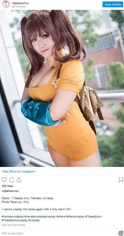 Este cosplay fue hecho por @mjkaitsurinu en Instagram y es completamente adorable. El atuendo que lleva el cosplayer está basado en el look de Diane de la temporada 1. Ella tenía una mochila con estampado de leopardo y sus guanteletes. En la temporada 1, Diane también era mucho más pucheros. Le gustaba mucho Meliodas y se sentía muy amenazada por Elizabeth. Todo eso cambió, por supuesto, una vez que ella y Elizabeth se hicieron amigas íntimas. Pero la naturaleza infantil de Diane aún se manifiesta de vez en cuando, por lo que el mohín es una excelente manera de posar para su personaje.