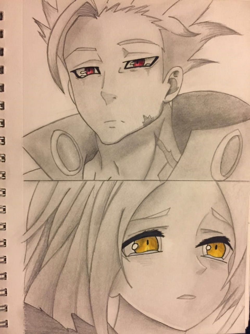 Aquí, graciensenju captura la dinámica entre Ban y Elaine a través de dos paneles separados, otorgando un contraste en sus reacciones entre sí. Sus ojos están llenos de lágrimas, mientras Ban intenta ardientemente ~ y comienza a fallar ~ en ocultar sus propias emociones.