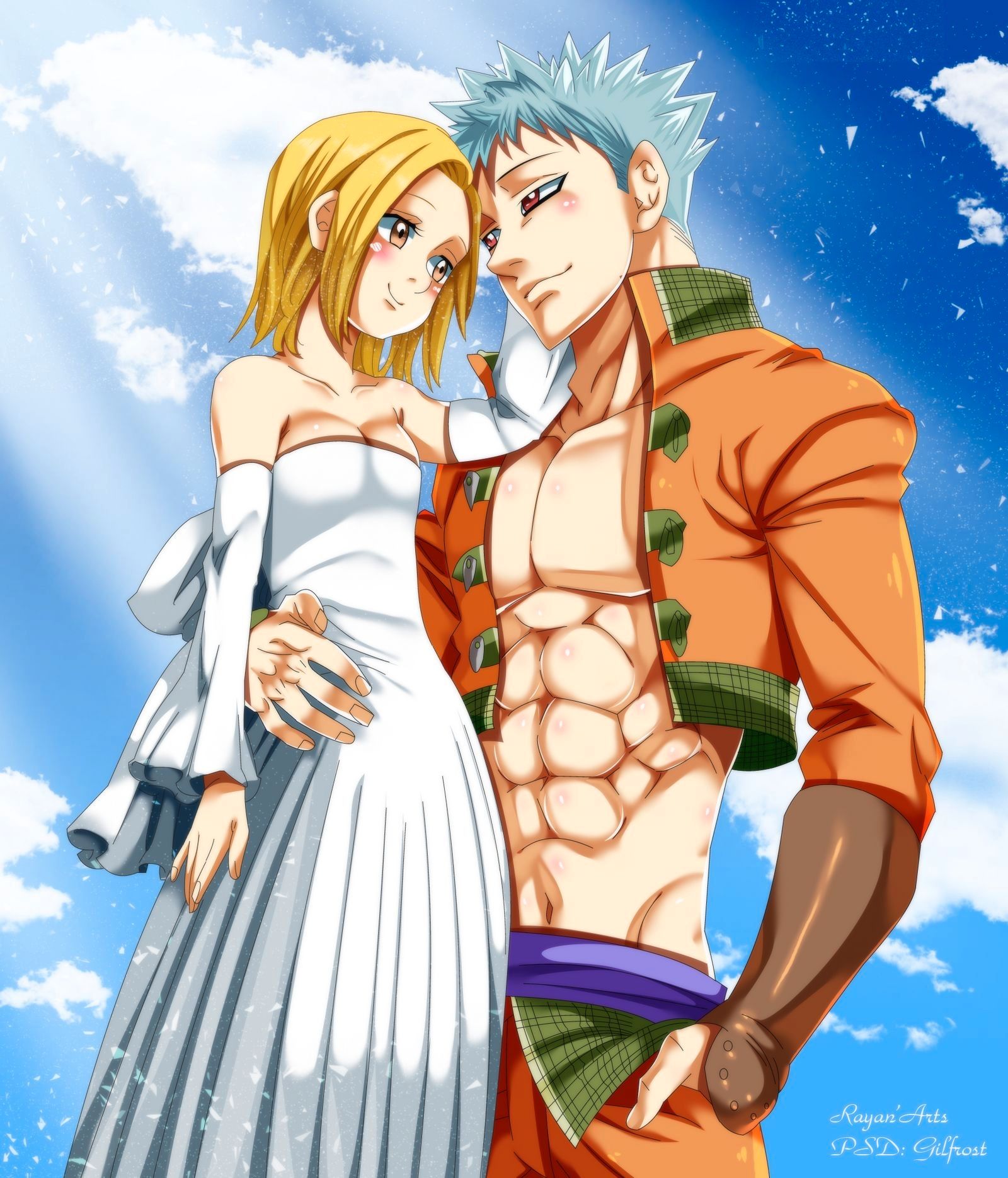 Inkspirate utiliza colores brillantes para ilustrar un futuro prometedor; uno en el que Ban y Elaine estén juntos para siempre. Con sus dedos sobre el mentón de Ban en una caricia familiarmente cariñosa, se enfrentan con sonrisas casi vertiginosas.