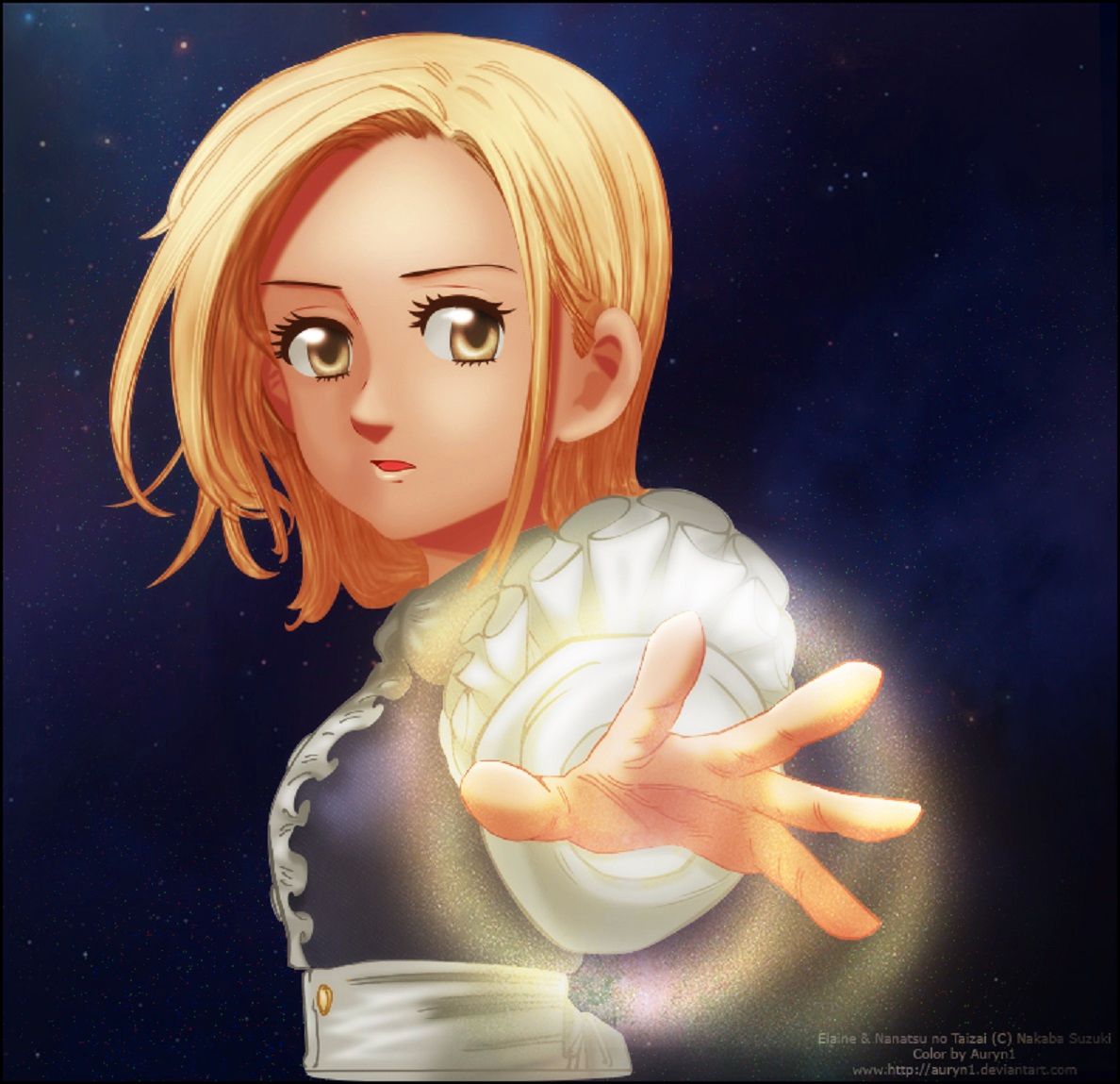 La talentosa Auryn1 recuerda a todos que aunque la relación de Elaine con Ban puede ser conmovedora, ella existe como su propia entidad, lo suficientemente poderosa como para haber defendido la Fuente de la Juventud de los intrusos durante muchos años. Su mente fue capaz de resistir el trabajo pesado que superó muchas vidas mortales, lo que implicó su disciplina y compromiso con su gente.