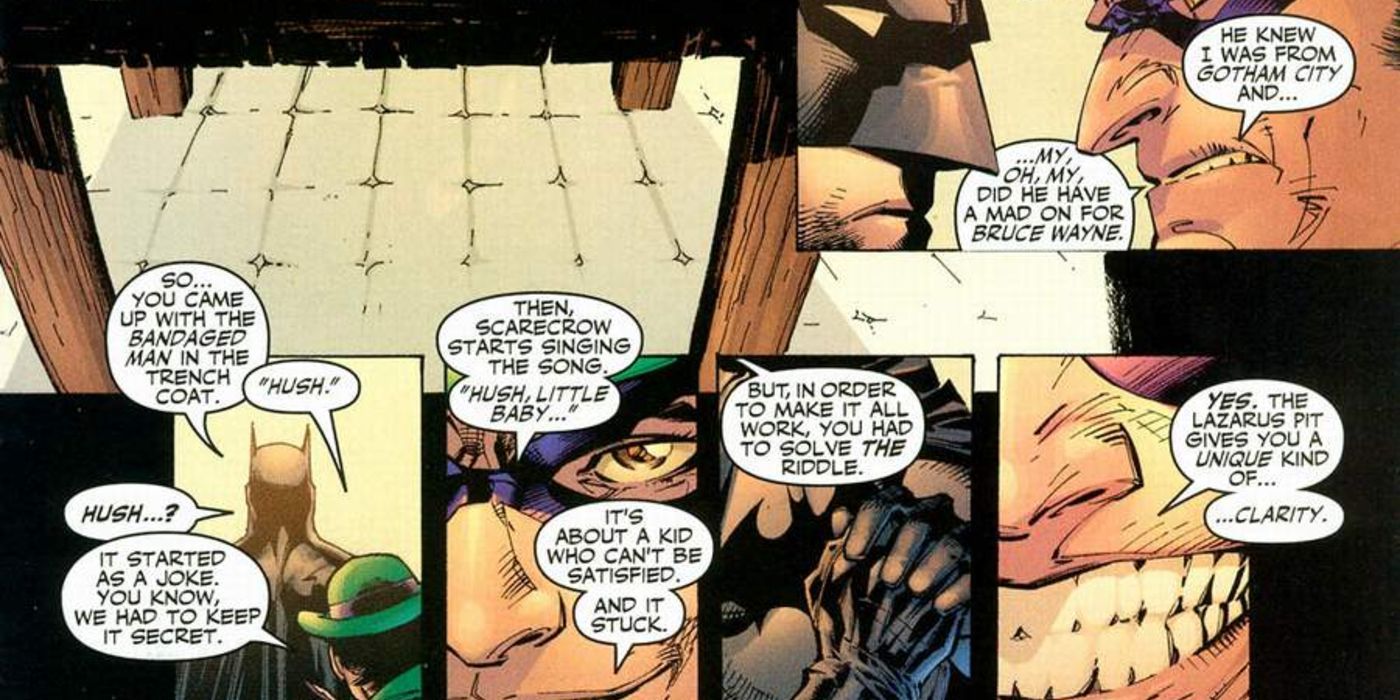 Escrito por Jeph Loeb e ilustrado por Jim Lee, Batman: Hush lanzó uno de los villanos más fascinantes en la historia editorial de los cruzados con capa. A diferencia de sus otros adversarios, Tommy Elliot alias Hush tiene una conexión con el mundo interior del héroe de DC, desde que era el joven Bruce Wayne. El enfoque de esta historia se centra en la revelación, todo se trata de la construcción de quién podría ser el hombre de las vendas.