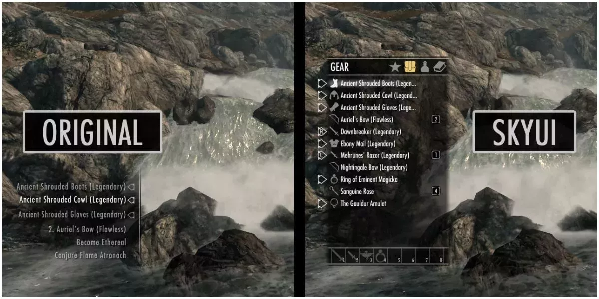 SkyUI es uno de esos mods desarrollados por su Equipo SkyUI que hizo un trabajo tan bueno en la organización de la interfaz de usuario de Skyrim que se considera esencial para la calidad del juego en general ya que el menú original es un desastre.