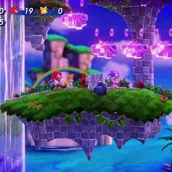Y lo que es más importante, Sonic y sus amigos también pueden utilizar los nuevos Poderes Esmeralda, que evocan la jugabilidad con potenciadores de. Con los Poderes Esmeralda, los jugadores pueden crear clones de sí mismos, nadar por cascadas y obtener el equivalente a la visión de rayos X para ver elementos ocultos del escenario. Los poderes pueden emplearse casi en cualquier momento, y se seleccionan desde un menú radial asignado al stick analógico derecho de un gamepad. Por lo demás, los desarrolladores mantienen ' los controles excesivamente sencillos; la mayor parte se controla con un solo botón, pero de forma confusa. Rara vez he utilizado estos nuevos poderes, sino que he recurrido principalmente a las técnicas de plataformas de Sonic.