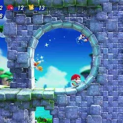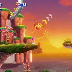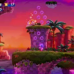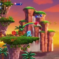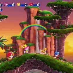 Además, para los fans de Sonic con hijos o parejas que quieran engancharse a la franquicia, se puede jugar en modo cooperativo, con hasta cuatro jugadores a la vez. Sobre el papel, se trata de una característica atractiva. En la práctica, el modo cooperativo es increíblemente frenético, incluso con sólo dos personajes en pantalla. El ritmo de juego acelerado y "explosivo" que caracteriza a Sonic implica que los personajes a menudo avanzan a toda velocidad dejando atrás a sus aliados. Durante una reciente sesión práctica con el juego, mi pobre compañero se pasó la mayor parte del tiempo reapareciendo mientras yo corría a través de los bucles y lanzadores repartidos por Bridge Island Zone. Un jugador más considerado que yo podría jugar de forma un poco diferente, más despacio, para acomodar a su compañero o hijo menos experimentado.