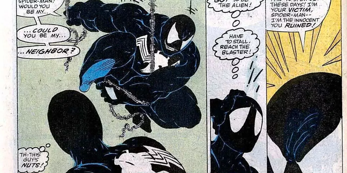 El simbionte Venom no siempre fue una fuerza de rabia. De hecho, su deseo original era encontrar un huésped con el que fusionarse y proteger. Pero tras muchos años de esclavitud y abuso, la propia esencia del alienÃgena fue corrompida por sus malvados anfitriones. Finalmente, el simbionte encuentra a Spiderman, un huésped que el alienÃgena considera digno. Sin embargo, temiendo por su propia naturaleza, Peter rechaza la oferta del simbionte de unirse a él, lo que sólo aumenta los sentimientos de venganza y aislamiento del alienÃgena. Muchos huéspedes más tarde, el simbionte Venom encuentra la redención con la versión arácnida de Gwen, que acepta al alienÃgena y se convierte en Gwenom.