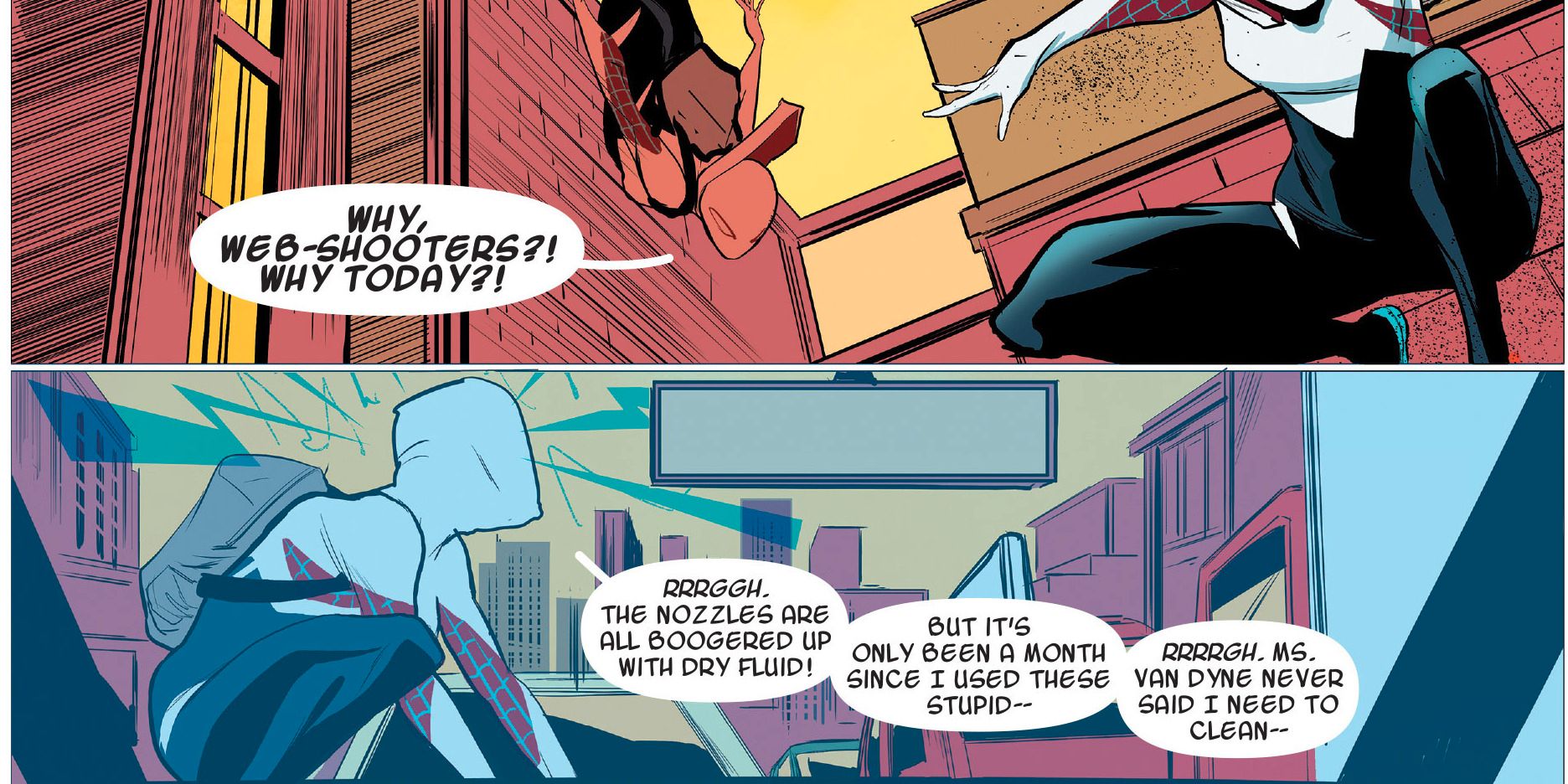 Este no es el caso de Gwen Stacy, que está constantemente interactuando con otros personajes de Marvel tanto de su propio universo como de otros. Ella sabe cuando no puede resolver algo por sí misma y no tiene miedo de pedir ayuda, como se muestra una y otra vez.