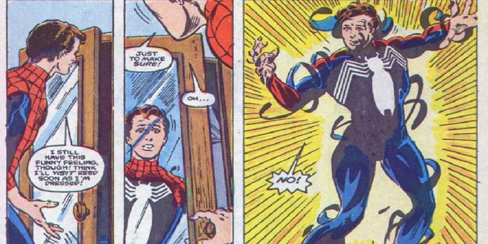 En Web of Spider-Man #1 (Louise Simonson, Greg LaRocque, Jim Mooney, George Roussos y Janice Chiang), Peter siente que algo va a por él. Acaba de romper con Gata Negra y no se da cuenta de que el disfraz de alienígena ha vuelto y se esconde a la vista como uno de sus trajes de Spiderman. Intenta liberarse del simbionte, pero la lucha parece inútil.