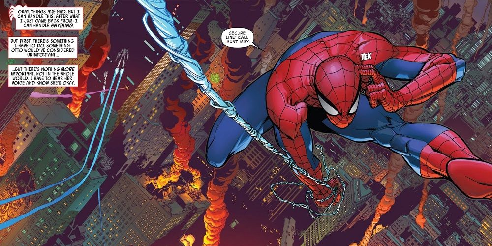 En la historia de Superior Spider-Man, Otto Octavius cambia de mente con Peter Parker para no dejar de existir. Así que cuando su cuerpo murió, su mente siguió existiendo en el cuerpo de Peter Parker.