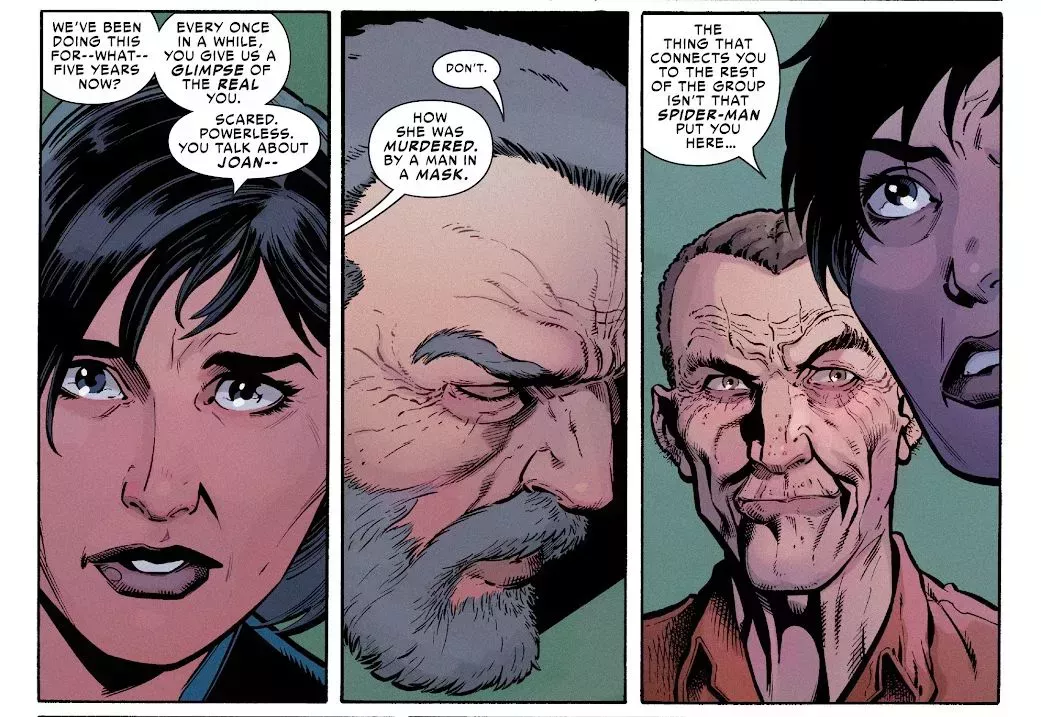 Zdarsky tiene una gran habilidad para describir con precisión la condición humana. Zdarsky utiliza reflexiones crudas y emocionales para encontrar los defectos de sus personajes. Spider-Man: Life Story Annual #1 se sumerge directamente en la trama, poniendo el foco narrativo en el jefe del Daily Bugle, J. Jonah Jameson. Zdarsky reescribe una parte importante de su historia. Mediante monólogos interiores, el personaje expresa sus aspiraciones, emociones y arrepentimientos mientras se tambalea por los efectos de su obsesión por Spidey. La historia, sin embargo, deambula con lentitud en la parte central antes de progresar considerablemente en la caracterización de su recluso cansado del mundo. Al igual que la serie limitada, el anual mantiene su mundo basado en el realismo y describe inteligentemente cómo las acciones siempre tienen consecuencias.