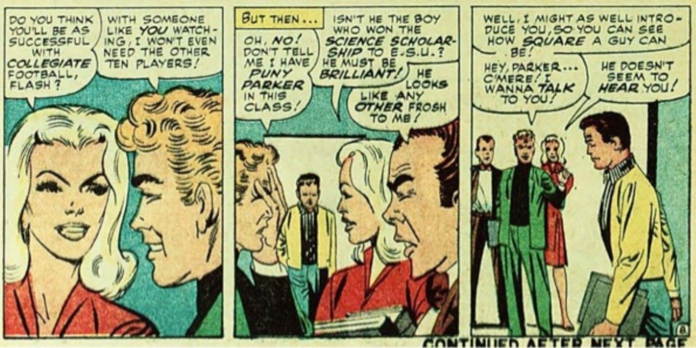 Peter es muy conocido por su época en la escuela secundaria Midtown, que llegó a definir al joven adolescente del que los lectores se enamoraron. Gwen Stacy asistió a la Escuela Secundaria Estándar, una escuela menos conocida en el Universo Marvel, pero la rival natural de la Escuela Secundaria Midtown. Es muy posible que los dos se hayan conocido antes sin darse cuenta; una interesante arruga en esta compleja historia de amor.