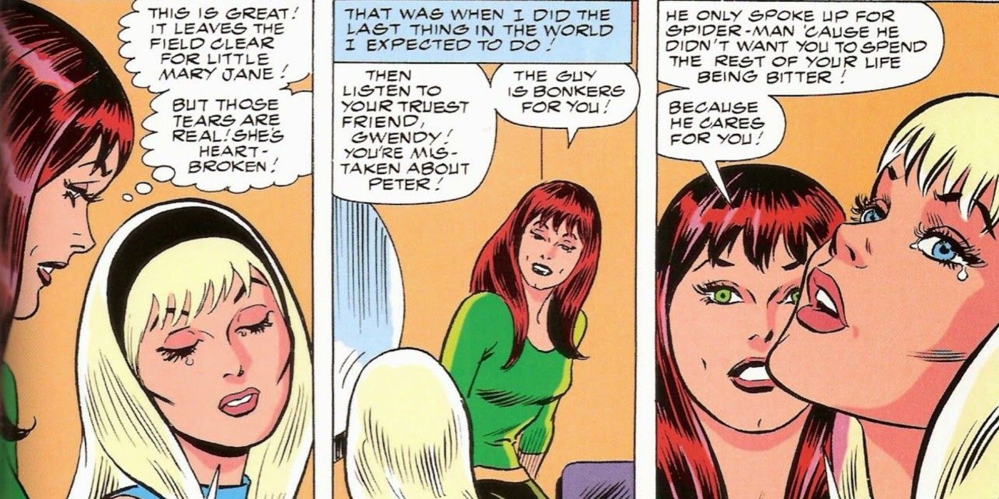 Peter Parker tiene mucho respeto por las mujeres de su vida, pero en una historia particularmente controvertida, Mary Jane y Gwen Stacy compitieron entre sí para tener una cita con Peter. Stacy estaba increíblemente celosa del vínculo que él ya había formado con MJ.