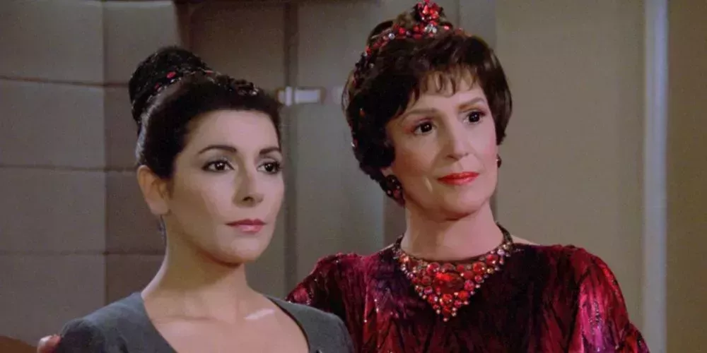 Nunca hay duda de que la consejera Deanna Troi quiere a su madre. Pero Lwaxana Troi aparece a menudo en el Enterprise y avergüenza a su hija con sus opiniones descaradas y su desprecio por las normas sociales. A Lwaxana Troi también le gusta coquetear con los hombres de la nave para hacerlos sentir incómodos, sobre todo al capitán Jean-Luc Picard.