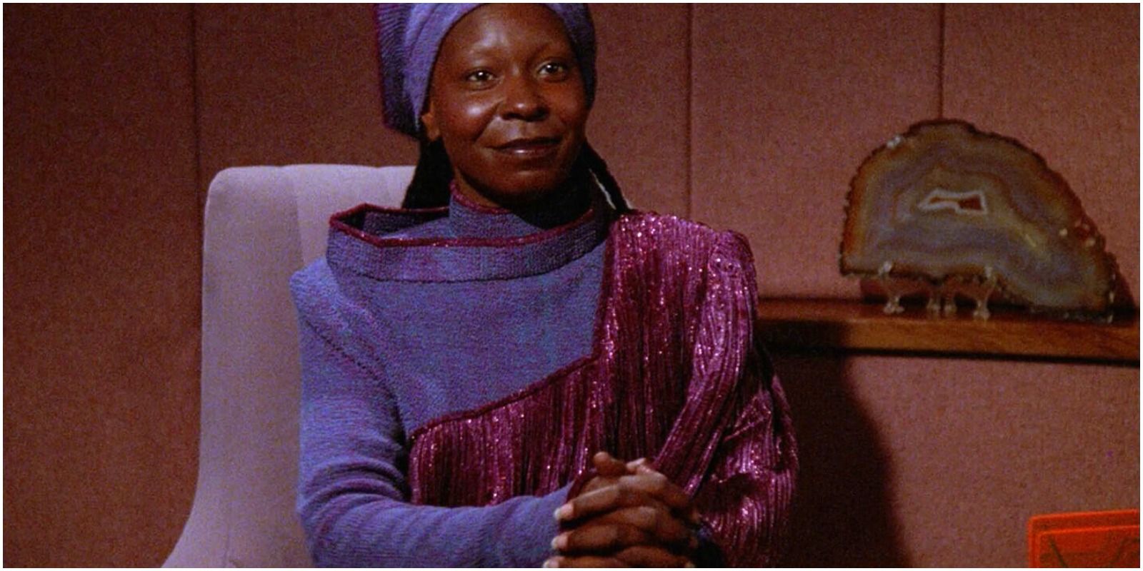 El personaje de Whoopi Goldberg, Guinan, es la camarera alienígena del bar del Enterprise, Ten-Forward. Aunque es camarera, ha desempeñado un papel secundario muy importante en la serie, a menudo orientando y aconsejando a los miembros de la tripulación que han acudido a su salón.