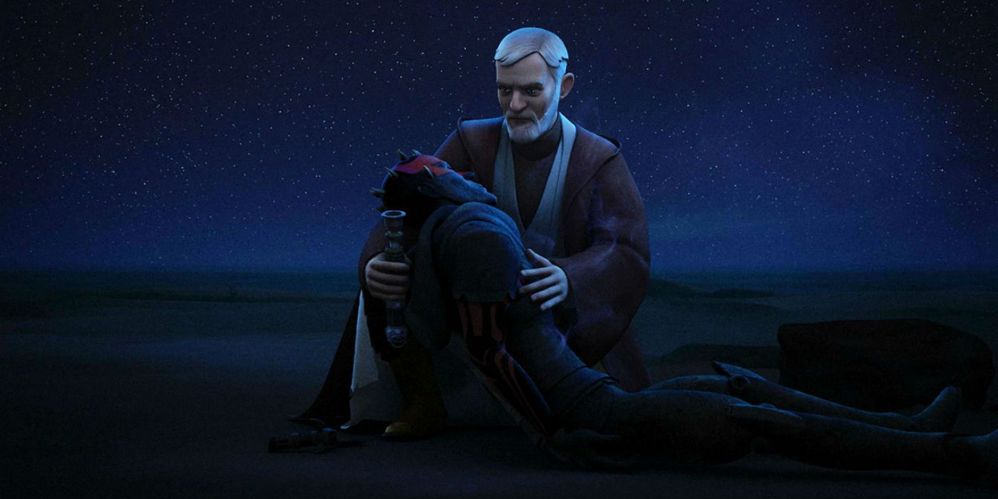 Los dos se enfrentan en un duelo durante Star Wars Rebels, en el que Maul intenta hacer el mismo truco con Obi-Wan que con Qui-Gon, pero en su lugar se encuentra con un rápido tajo en el cuerpo. Esta breve escena de lucha fue, con mucho, una de las mejores escenas de toda Star Wars.