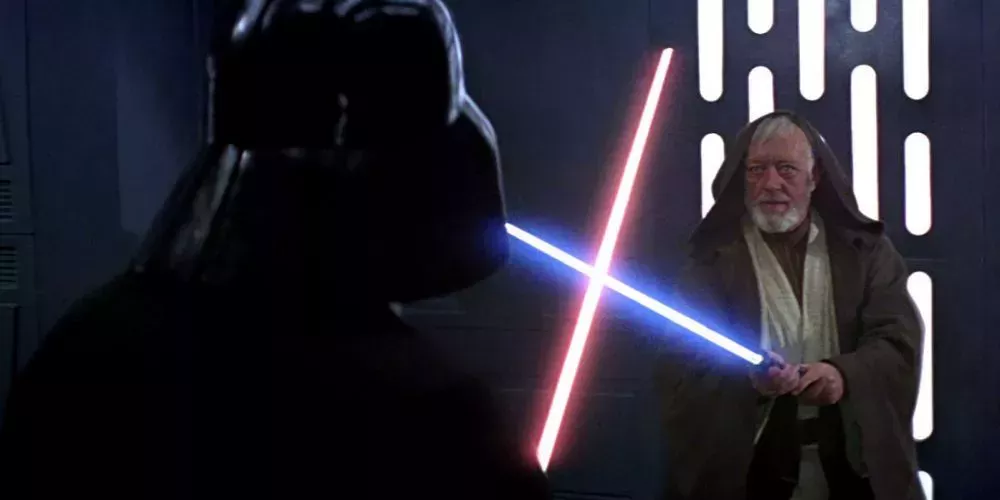 De todas las batallas que libró Obi-Wan en las películas de Star Wars, la primera que el público vio fue la última contra su antiguo aprendiz, Darth Vader. La coreografía de este combate no es nada especial, pero es el significado que hay detrás de su resultado lo que lo hace tan grande. Cuando parece que Darth Vader tiene acorralado a Obi-Wan y que va a entrar a matar, Obi-Wan sabe que Luke le está mirando y aprovecha el momento para bajar la guardia, dejando que Darth Vader le golpee. El resultado le hará, como dice, más fuerte de lo que Darth Vader podría entender una vez que se haya convertido en uno con la fuerza.