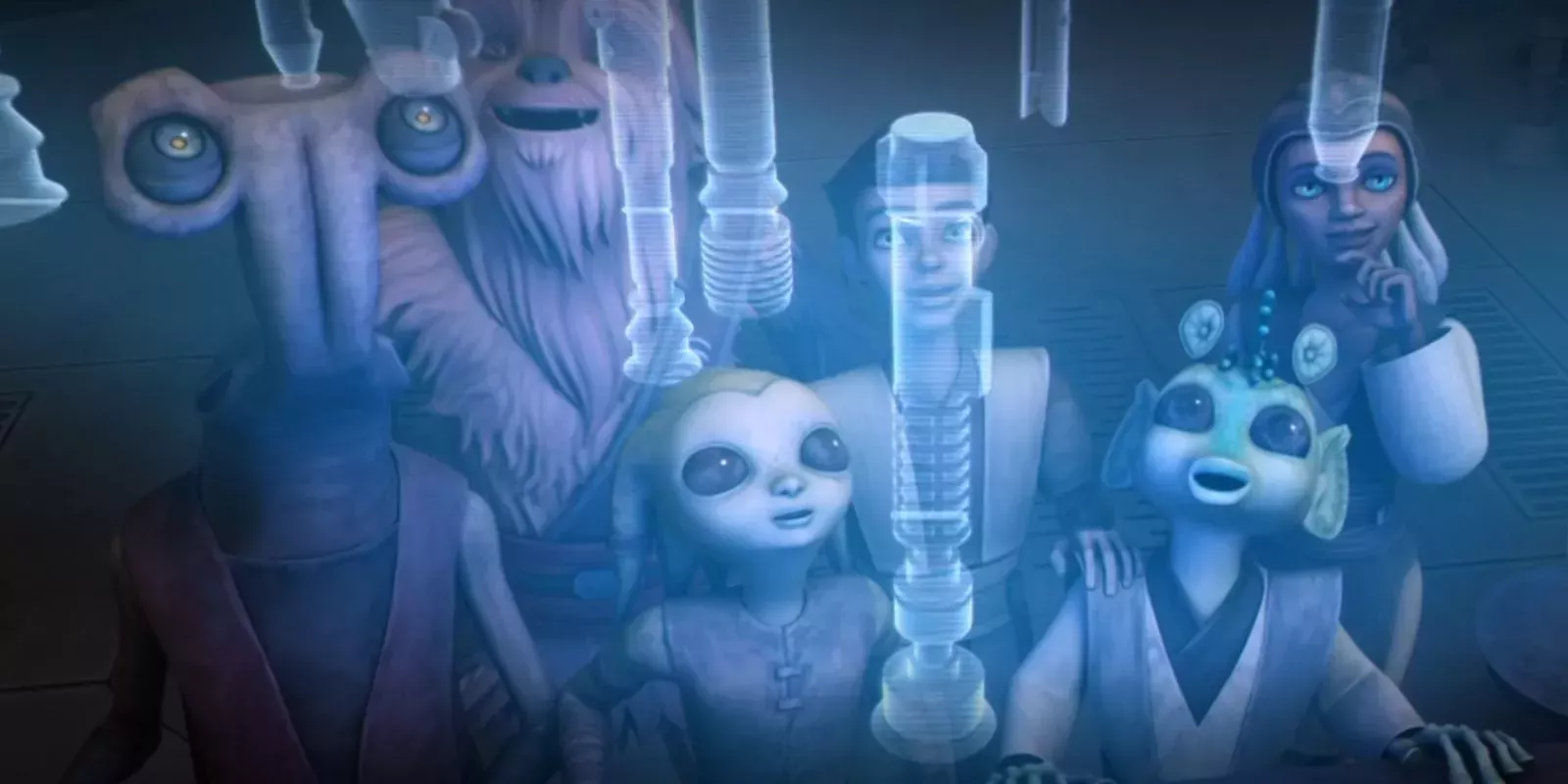 El diseño de los sables láser en el canon actual de Star Wars es mucho menos flexible, pero el proceso de un joven Jedi para encontrar su cristal kyber sigue teniendo significado. En "La reunión" deStar Wars: The Clone Wars, seis padawans viajaron a las Cuevas de Cristal de Ilum para encontrar sus cristales kyber para sus sables láser en un ritual de graduación. El viaje de cada uno de ellos para encontrar su cristal kyber fue único, ya que cada uno tuvo que superar sus propios miedos y defectos para encontrar con éxito su cristal. Tras el surgimiento del Imperio, los cristales kyber eran más difíciles de encontrar, pero como Ezra Bridger demostró en "La senda del Jedi"deStar Wars Rebels, los jóvenes Jedi podían seguir ganando sus cristales, aunque de forma menos ceremonial.