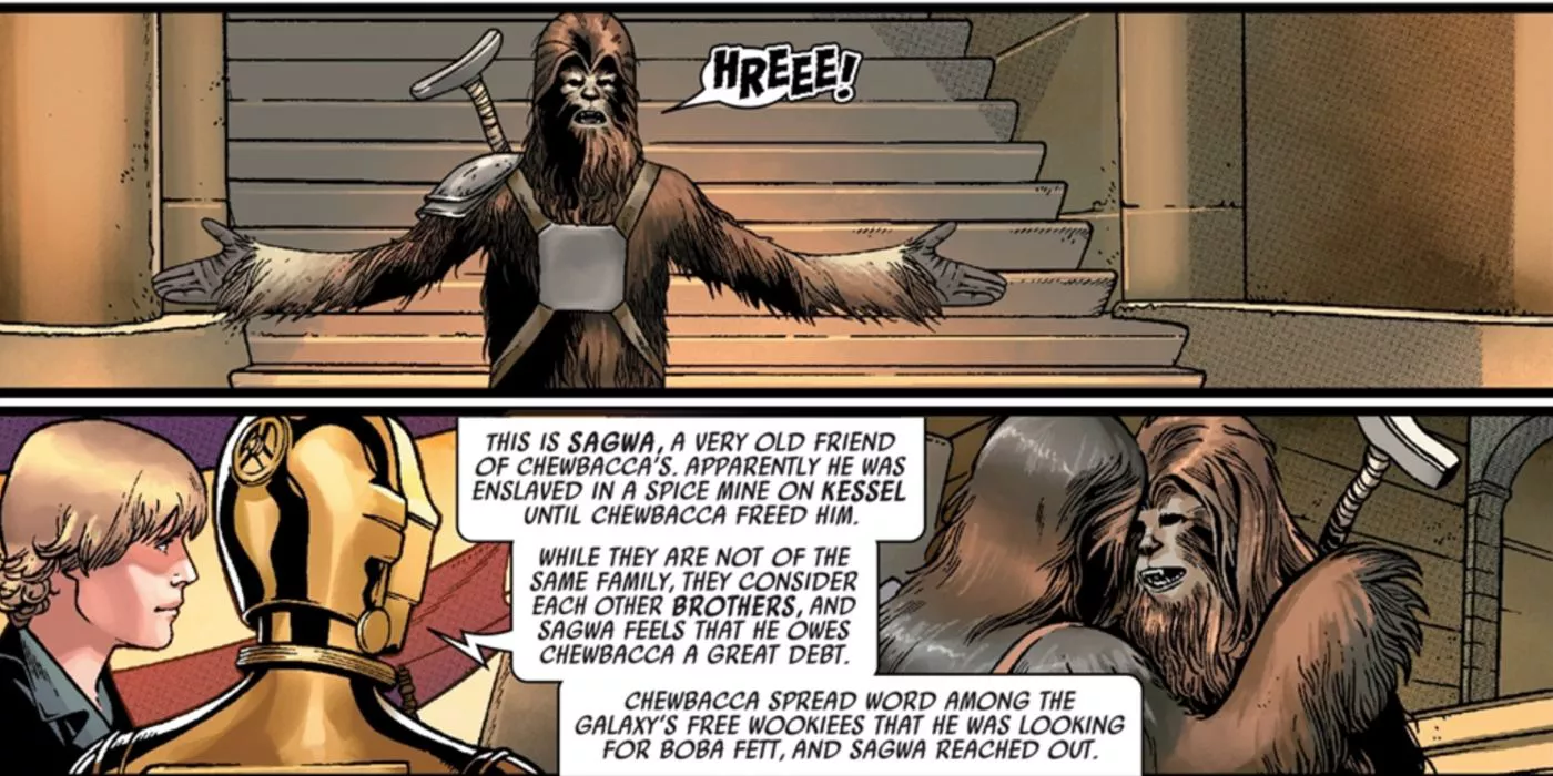 Chewbacca es uno de los personajes más heroicos del Universo Star Wars . Sus acciones heroicas se vuelven aún más sustanciales si se tiene en cuenta que el público nunca entiende lo que Chewbacca dice. Aunque hay trozos traducidos por Han y C-3PO, no se sabe lo que Chewie está diciendo realmente. Esto significa que las hazañas de Chewie están totalmente definidas por sus acciones, y ciertamente ha sido activo a lo largo de los años. Chewie acaba de recordar uno de sus actos mientras buscaba a Han en la Luna del Contrabandista.