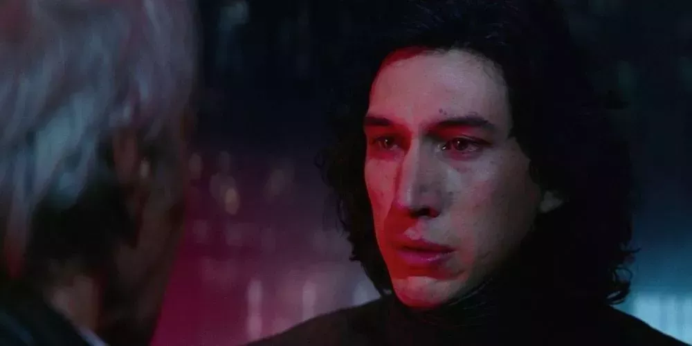 En la escena en cuestión, Kylo Ren y Han Solo se encuentran en una estrecha pasarela sobre las entrañas de la Base Starkiller. Han le dice a su hijo que Snoke lo está utilizando por su poder y le ruega que vuelva a casa. E incluso con la actuación de tipo duro que Kylo trata de poner, está claramente en conflicto, incluso le dice a su padre que está "siendo destrozado". Entonces, Kylo ofrece su sable láser a su padre, pero cuando Han pone la mano sobre él, la hoja quebrada se clava profundamente en su sección media.