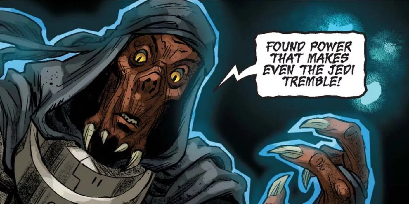 La voz observó que Grievous estaba "impregnado" de destrucción. Revelándose como una poderosa entidad vinculada a la Fuerza -si no la encarnación de la propia Fuerza viviente-, la voz devolvió a Grievous a su aspecto anterior a convertirse en ciborg, cuando era un guerrero kaleesh llamado Qymaen jai Sheelal, y con sus siguientes palabras sugirió que alguna vez podría haber sido incluso sensible a la Fuerza: "Has traído la destrucción sobre ti. Buscas destruir un poder que no comprendes. Has eliminado tu propia conexión con él. La has reemplazado con partes cuya fuerza entiendes. Pero tu comprensión no es fuerza. Es pequeño. Tú eres pequeño".