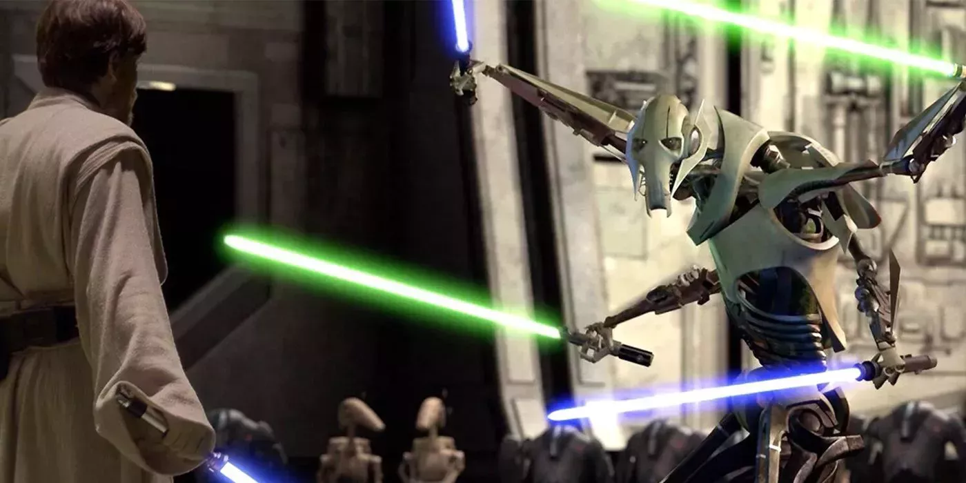 El general Grievous fue uno de los villanos de La venganza de los Sith y los fans quedaron alucinados cuando demostró que era capaz de manejar cuatro sables láser simultáneamente. Obi-Wan se enfrentó a él y ganó, consiguiendo incluso desarmarlo.