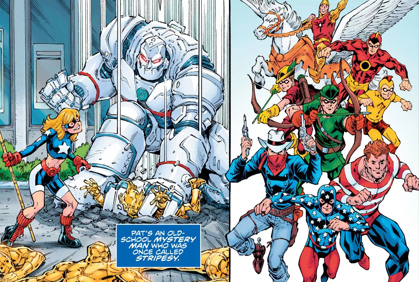 Cuando Pat le pide a Courtney que se una a él en la misteriosa misión de los reformados Siete Soldados, el equipo de la Edad de Oro tiene un nuevo miembro para sustituir a Star-Spangled Kid, y Courtney ya ha demostrado ser digna de su legado y de empuñar el Báculo Cósmico.