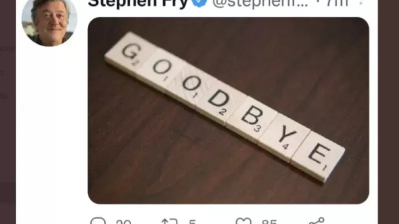 El actor, escritor, comediante y locutor británico anunció su marcha el martes (8 de noviembre) publicando una imagen de letras de Scrabble, en la que se deletrea la palabra "Adiós".