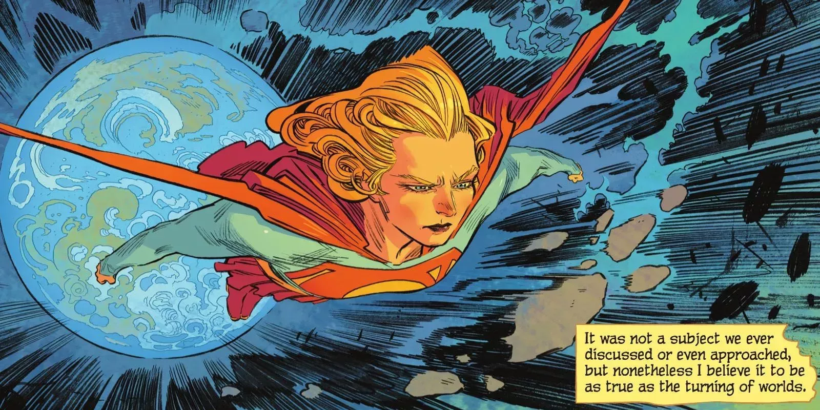 Supergirl lleva mucho tiempo entre nosotros y es uno de los personajes más polifacéticos de la historia de DC. King y Evely aprovechan esto de una manera muy singular, y una parte de ello tiene que ver con la narración de Ruthye. Ella ve a Supergirl por primera vez y relata lo que aprendió de ella y mientras estuvo a su lado.