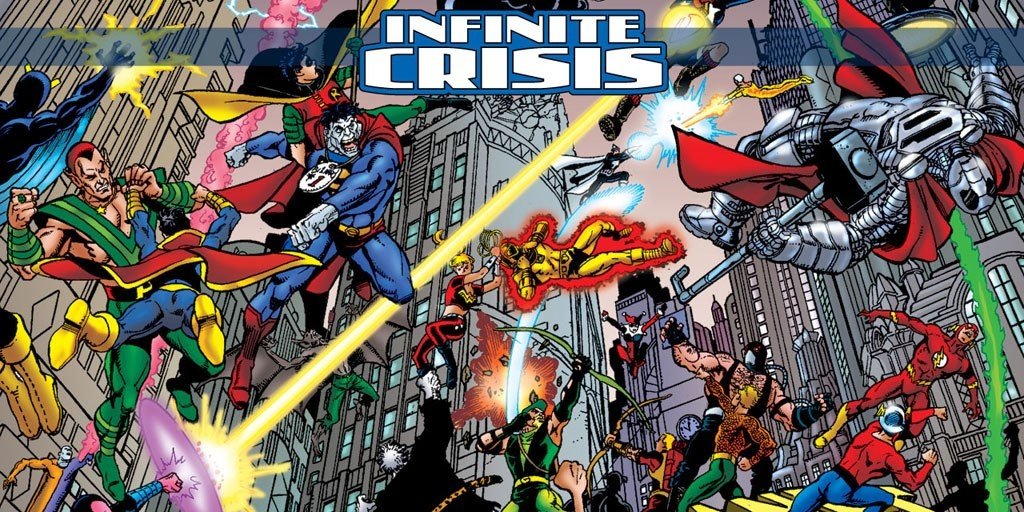 Infinite Crisis se publicó como continuación directa de Crisis On Infinite Earths. DC construyó la historia durante más de un año, rociando pistas de lo que estaba por venir y fue épico: los villanos dejando de lado sus diferencias y formando un equipo, una guerra interestelar que ayudaría a alterar el cosmos, el Espectro y Eclipso arrasando la comunidad mágica, y una de las herramientas tecnológicas más peligrosas de Batman que se volvió en contra de los héroes, todo lo cual condujo a algunos retornos escandalosos y a un conflicto que traería de vuelta el Multiverso.