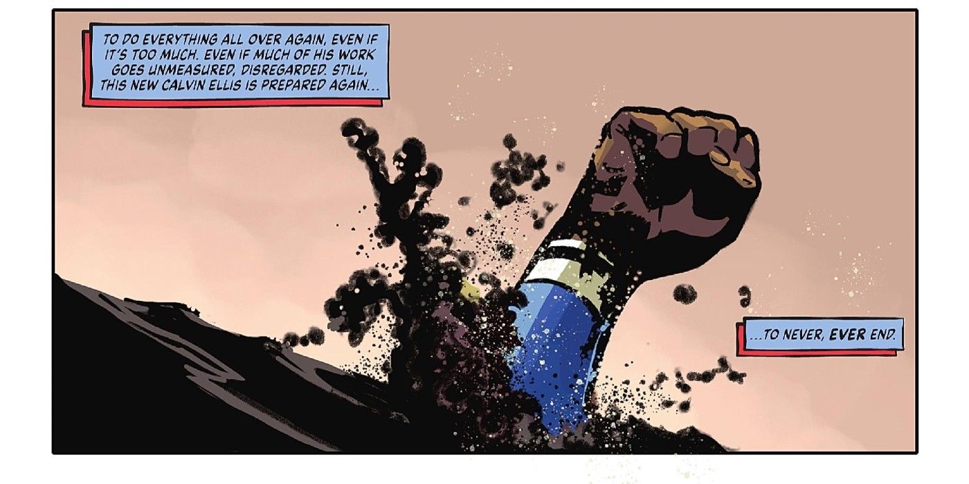 La primera señal de esto es en las secuelas de Calvin al derrotar a Super-Doomsday. Doomsday se lanzó a destruir a todos los Superman de todos los universos y mató a Clark Kent. Sin embargo, Calvin Ellis estaba seguro de que podía devolver a Clark a la vida usando su Revivir Lázaro en su Fortaleza.