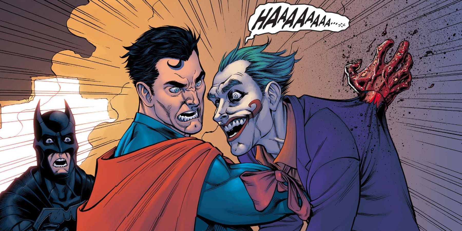 En el Universo de la Injusticia, ocurrió un terrible evento. El Guasón mató a Lois Lane a sangre fría. En la mayoría de las otras Tierras del Multiverso, el Hombre de Acero es resistente y desafiante en su venganza y en el hecho de que puede seguir siendo un símbolo de esperanza para el futuro.