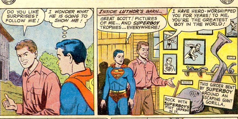 Lo creas o no, Superman y Lex Luthor fueron amigos. Durante la Edad de Plata, se revela que los dos fueron juntos a la escuela cuando Supes era Superboy. Esta edición de 1960 de Adventure Comics muestra a Superboy como amigo de un chico moreno llamado Alexander Luthor que ama la ciencia.