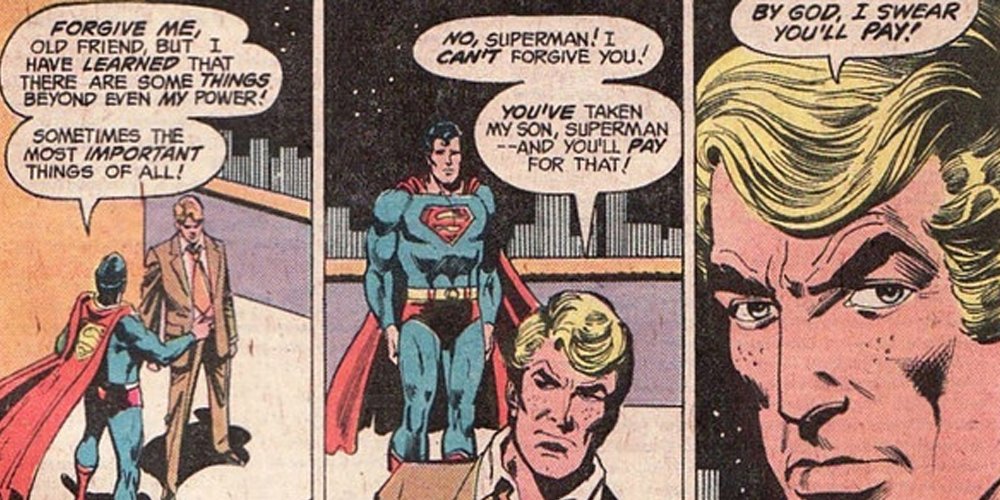 Los dos se convierten en los mejores amigos de Luthor, incluso inventando un antídoto para los efectos de la kriptonita. Todo sale mal cuando Luthor inicia accidentalmente un incendio en su laboratorio y Superboy aparece para apagar el fuego usando su súper aliento. Sin embargo, su ráfaga de aire accidentalmente deja caer ácido en el experimento de Luthor y sin querer hace que el cabello de Luthor se caiga. Luthor promete dedicar su vida a vengarse de Superboy, empezando por atacar a Superboy con un meteorito kriptonita. 2003's Superman: Birthright también reinicia este origen.