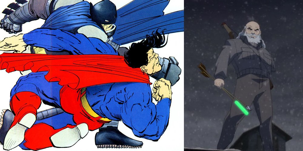En The Dark Knight Returns, de Frank Miller, Batman se ha vuelto más canoso y violento con el envejecimiento y no es hasta que el presidente Reagan envía a Superman para tratar de detener a Batman que estos dos llegan a las manos.