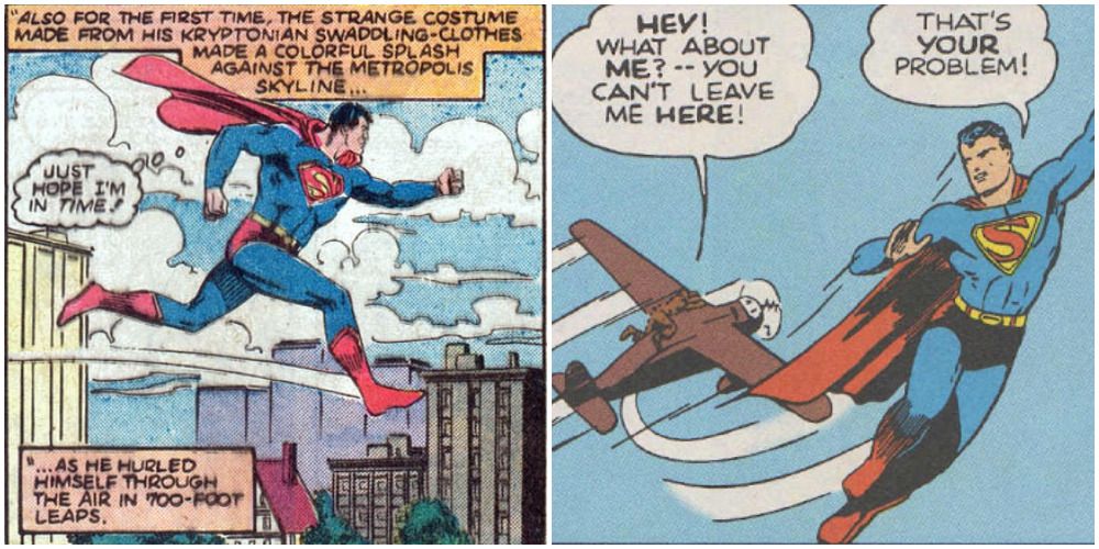 Pero originalmente, no podía volar en absoluto. Sólo podía "saltar edificios altos de un solo salto". Este sería uno de los muchos nuevos poderes que obtuvo en los años posteriores a su debut.