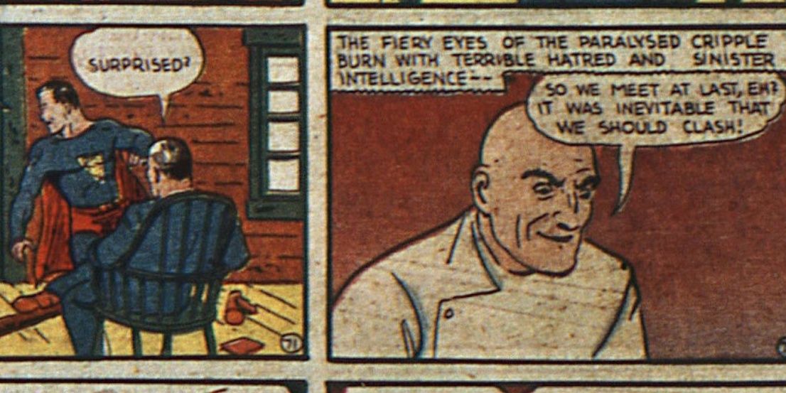 El primer supervillano con el que luchó fue el Ultra-Humano, un anciano paralizado cuyo increíble intelecto sobrehumano lo convirtió en el opuesto del guapo Hombre de Acero. El Ultra-Humano apareció por primera vez en Action Comics #13 en junio de 1939. Por el contexto, Batman apareció por primera vez en marzo de ese mismo año.