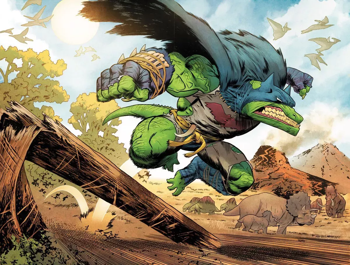 - Evento de extinción: Por favor, ven a ver la historia de origen de Batman en el cómic donde la Liga de la Justicia son dinosaurios