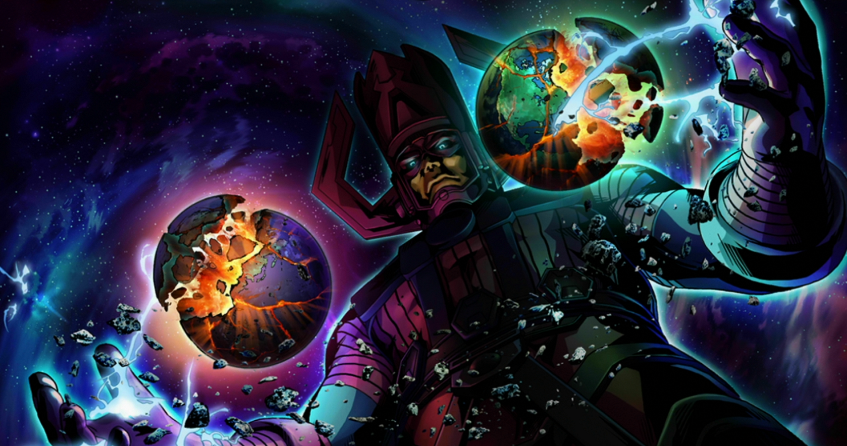 galactus es un enemigo clásico de los cuatro fantásticos, y existe consumiendo planetas enteros... era un pequeño punto en el cielo al principio que poco a poco...