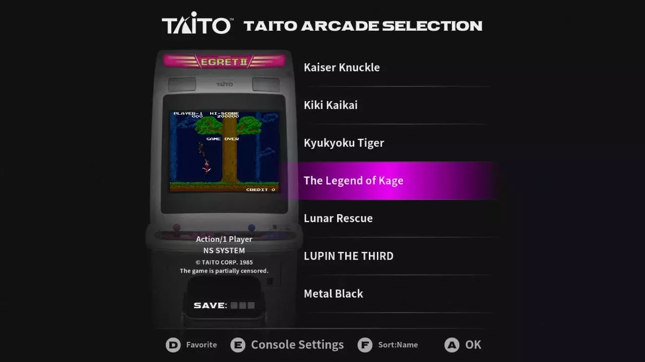 Si tuviera que quejarme de la biblioteca del Egret II Mini, es que hay algunos títulos que me encantaría que se incluyeran, como Zoo Keeper, Front Line, The Ninja Warriors, Night Striker y Cleopatra's Fortune. Aunque, siendo realistas, si Taito tiene previsto lanzar más paquetes de expansión de juegos en el futuro, es obvio que se iban a reservar algo