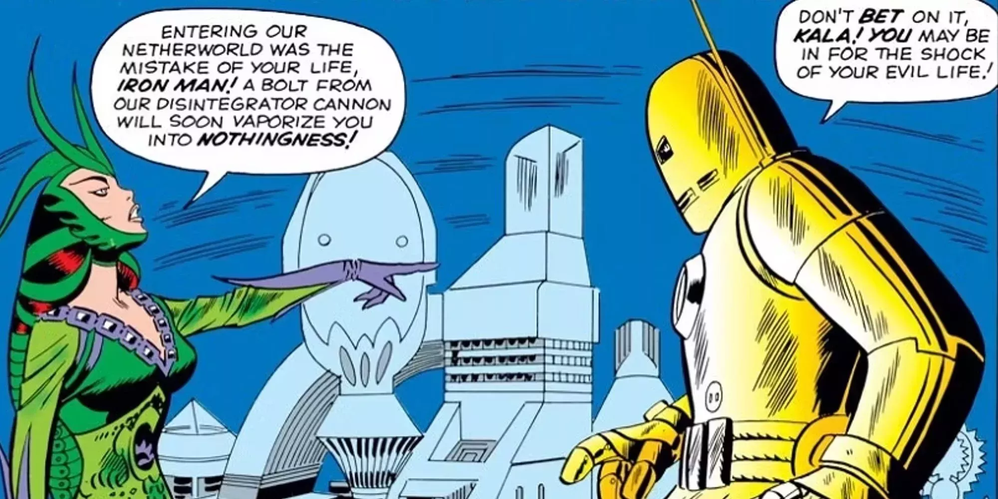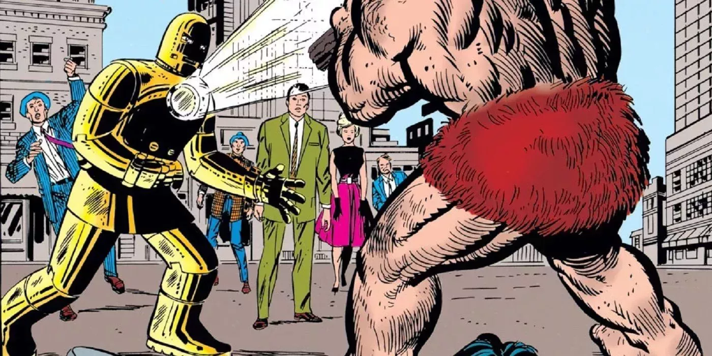 En cambio, muchos de los primeros números de Iron Man presentaban un montón de aventuras pulp. Luchaba contra alienígenas que enviaban un robot gigante con forma de cavernícola, o viajaba al centro de la Tierra para proteger el planeta de un reino subterráneo. Pasarían varios números antes de que Iron Man se asentara en las aventuras superheroicas estándar.