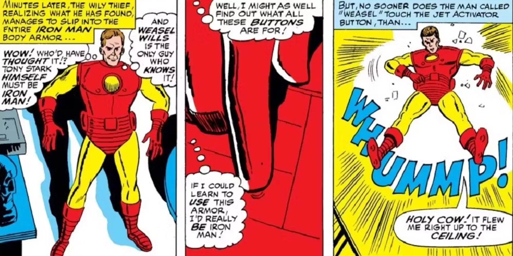 Durante décadas, la identidad de Iron Man se mantuvo en secreto para todos, excepto para sus aliados más cercanos. Tanto los funcionarios del gobierno como los criminales querían saber quién estaba bajo la armadura, pero al principio la información se reveló a la más improbable de las fuentes. En Tales of Suspense #65, un delincuente común conocido como Weasel Willis consiguió colarse en la base de Industrias Stark.