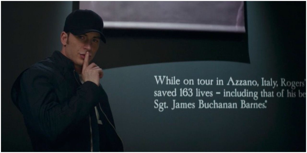 Sam le pregunta a Bucky esto después de un encuentro con el nuevo Capitán América, John Walker. Bucky no cree que Walker merezca el escudo por lo que dice que deberían quitárselo. Sam entonces le pregunta si recuerda la última vez que lo robaron y procede a relatar los hechos.