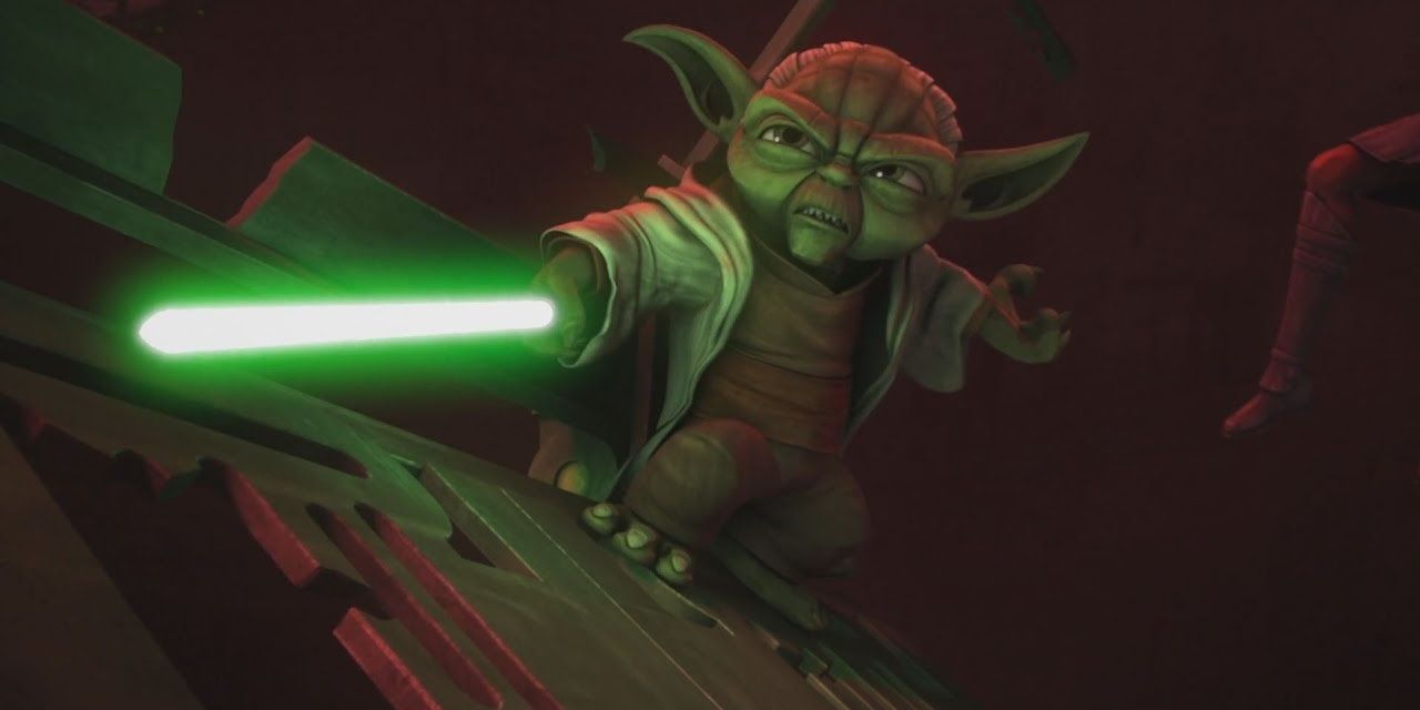 Esta escena es un ejemplo de fanservice en su máxima expresión. Mientras se encuentra en el mundo sith de Moraband, el Maestro Jedi Yoda experimenta una visión inducida por la Fuerza en la que él y Anakin Skywalker se enfrentan a Darth Sidious y al Conde Dooku. Se desencadena una lucha épica entre los cuatro, que incluye un presagio del destino de Dooku en La venganza de los Sith. A continuación, la escena pasa a centrarse sólo en Yoda y Sidious, donde finalmente Yoda se da cuenta de que debe estar dispuesto a sacrificarse por un bien mayor. La visión de Yoda cuenta con una acción de sable láser de primera categoría y una narración excepcional que cualquier fan experimentado de Star Wars sabrá apreciar.