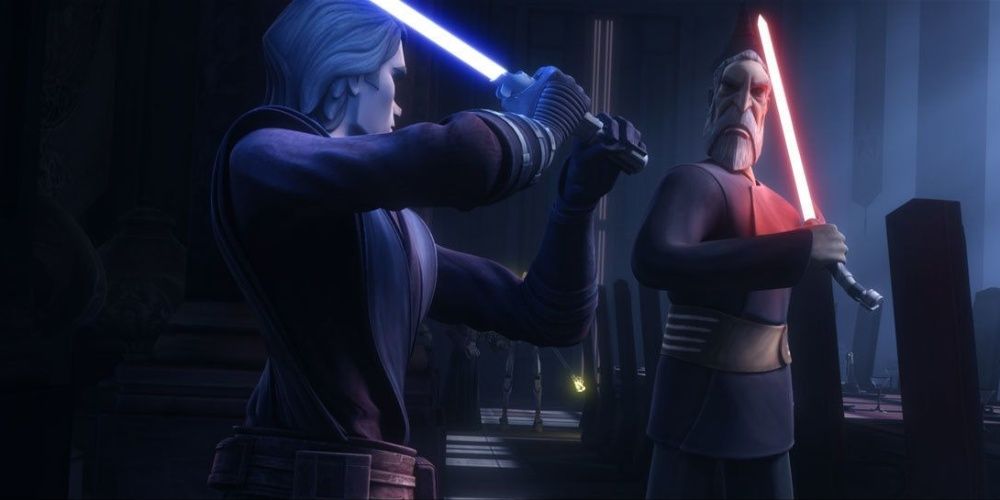 Este es uno de los duelos de sables láser más inesperados de la serie, pero eso no cambia el hecho de que sea sin duda uno de los mejores. El establecimiento del dominio de Maul en Mandalore fue descubierto por Darth Sidious, que inmediatamente viajó allí para eliminar esta potencial amenaza para sus planes. Todo lo relacionado con la lucha está perfectamente desarrollado, tanto la acción como los diálogos. Los guionistas y animadores hicieron un excelente trabajo mostrando a los fans la complicada naturaleza de ser un Sith en esta escena.