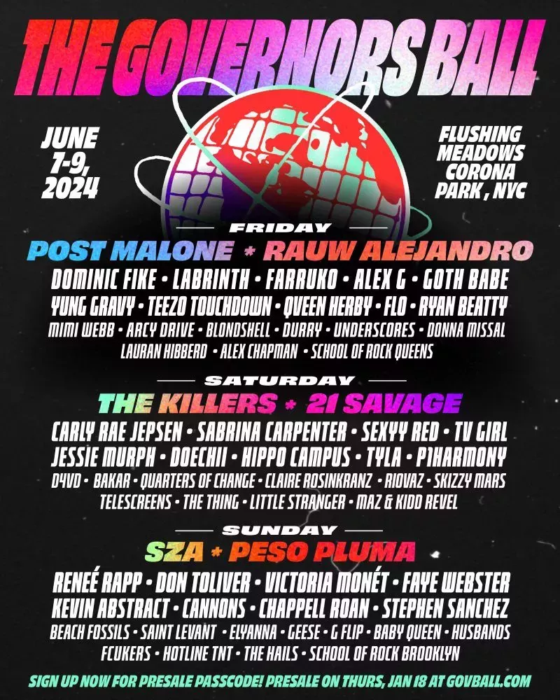 The Killers, Post Malone y SZA encabezarán el Governors Ball 2024