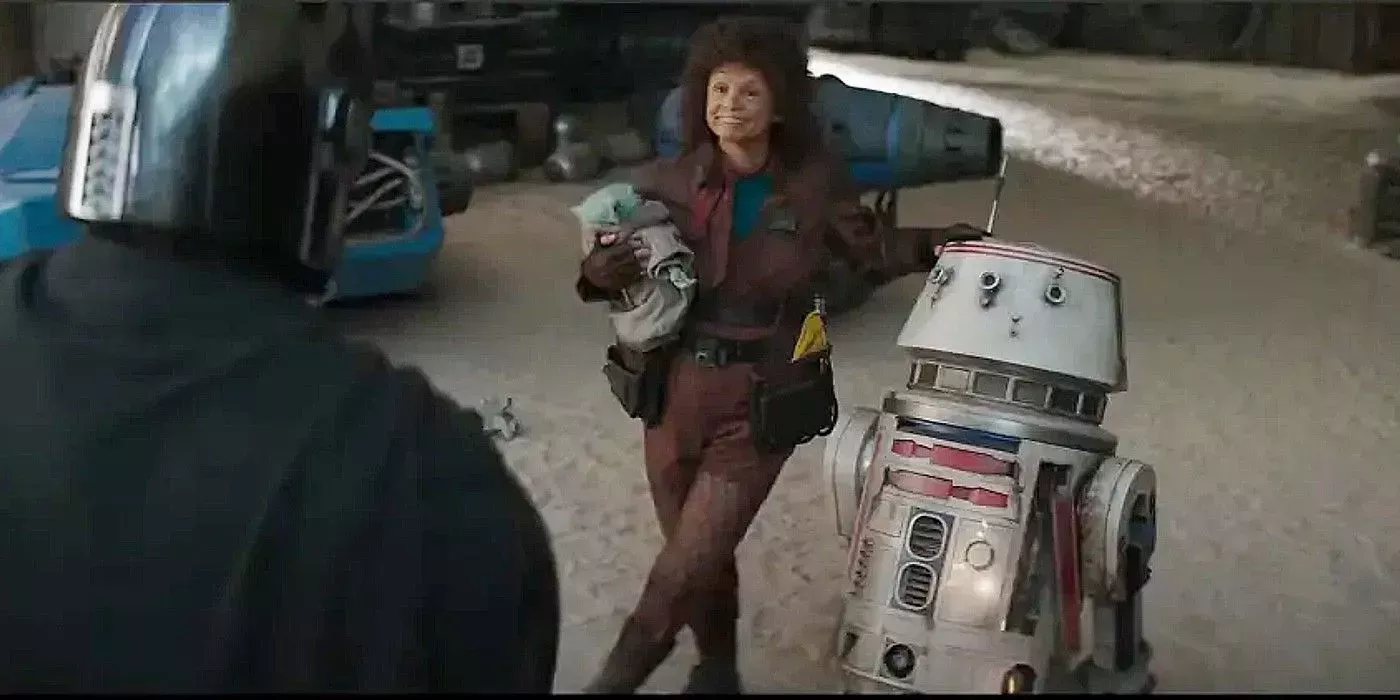 Ella le reitera que si se baña en las Aguas, sus pecados serán perdonados. Así pues, Djarin y Grogu abandonan al Armero y a su gente, dispuestos a emprender la siguiente fase de su viaje. En el camino, Grogu es testigo de criaturas que vuelan por el hiperespacio, algo que la tradición de Star Wars ha insinuado durante años, pero que rara vez ha mostrado.