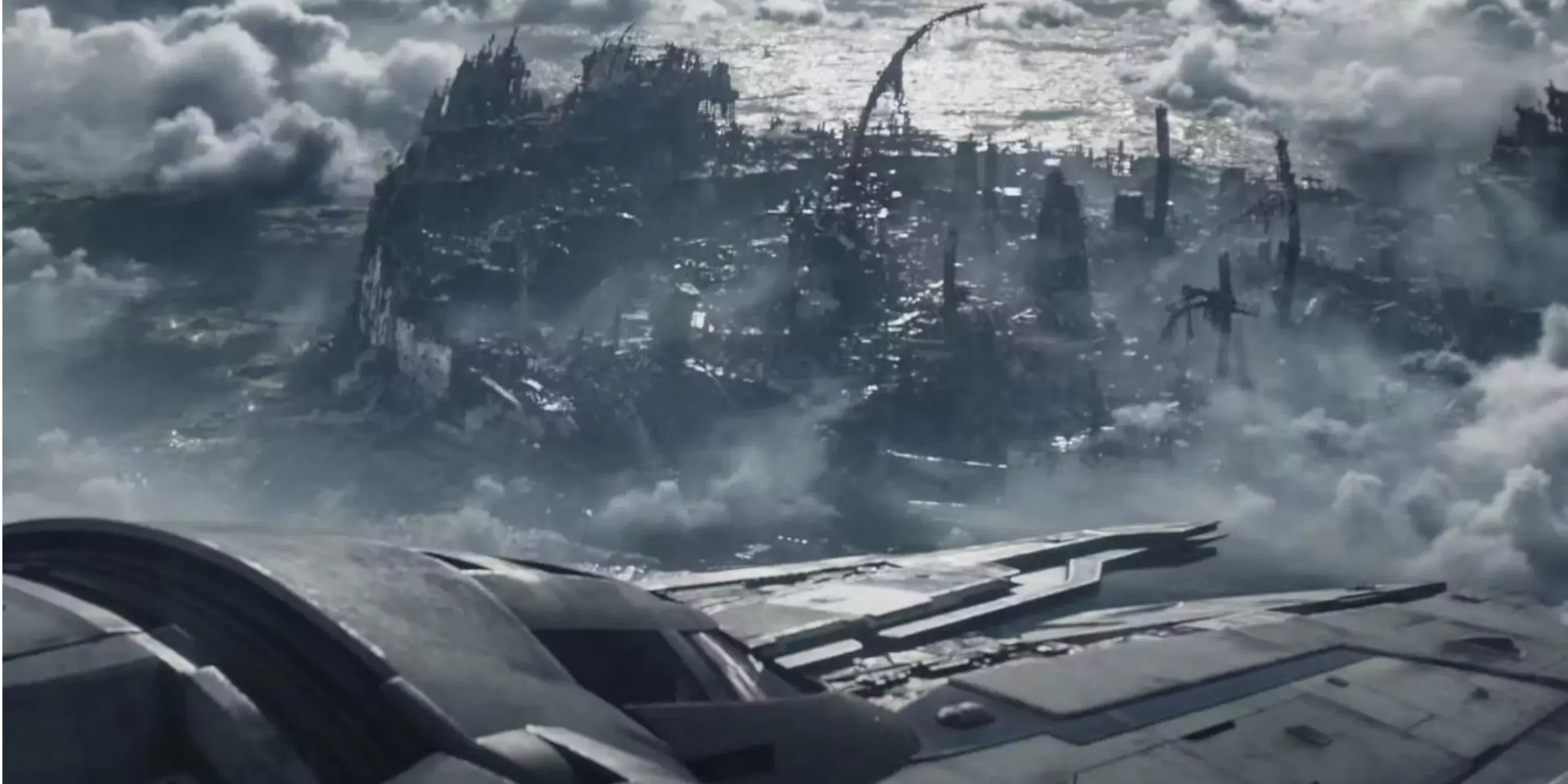 Bo-Katan, Grogu y el astromecánico llevan su nave (otro guiño para los fans de TCW ) de vuelta a Mandalore. Al atravesar la capa de nubes, ve su mundo natal por primera vez. Se lo describe a Grogu con nostalgia, reflejando lo que Djarin dijo sobre el mundo cuando él y su hijo llegaron antes.