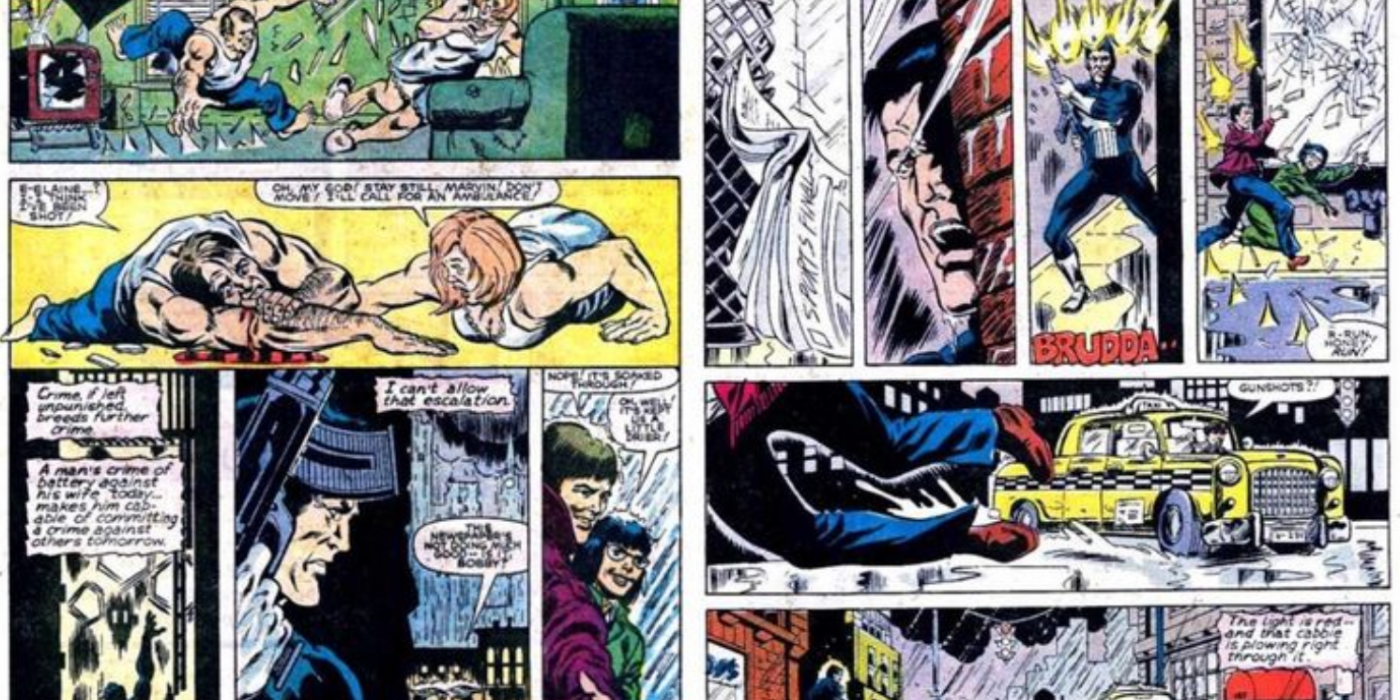 El número 82 de The Spectacular Spider-Man de Bill Mantlo, Al Milgrom, Jim Mooney, Bob Sharen y Diana Albers muestra al Castigador en su faceta más destructiva en las primeras 5 páginas. Su primer objetivo es un hombre que agrede a su mujer, un crimen atroz que no merece una fuerza tan excesiva.