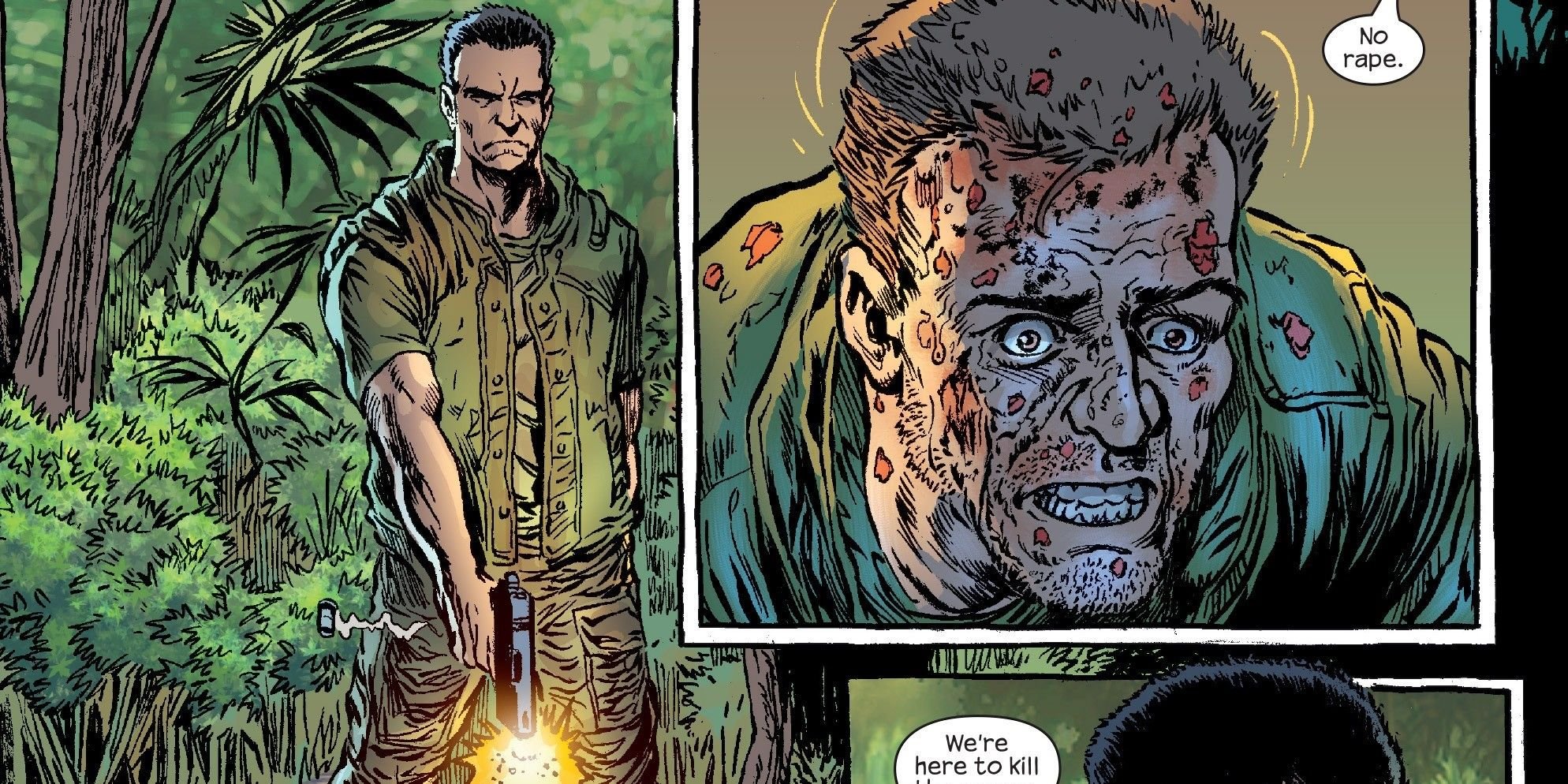 En lo que parece ser una de las historias más oscuras del Castigador, el segundo número de Born de Garth Ennis y Darick Robertson retrata a Frank Castle como un capitán de Vietnam. Tras una emboscada de francotiradores que acaba con varias tropas, el Capitán Castle elimina sin ayuda a los 6 francotiradores con una ametralladora ligera. Una francotiradora del Viet Cong sobrevive a la descarga de balas de Castle, pero resulta herida.