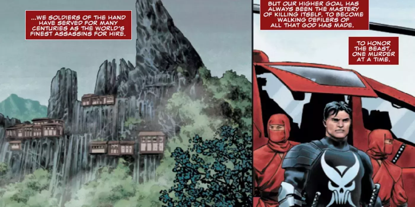 Ahora que La Mano tiene a Frank Castle al frente, el reinado de La Bestia en la Tierra podría ser por fin realmente alcanzable. El culto de La Mano a la violencia y la exaltación del asesinato como algo divino se deriva de su adoración a La Bestia, y no hay mejor ejemplo humano de esos ideales que el Castigador. Durante casi cincuenta años, Frank ha sido el antihéroe preeminente del Universo Marvel, repartiendo muerte y destrucción con facilidad. Más que nada, la cruzada de Frank siempre ha abrazado la finalidad como forma definitiva de justicia. Esto ha deformado tanto el sentido personal de heroísmo de Frank como su reputación, y ambos han sido tomados por La Mano como indicadores de lo cerca que está de su dios.